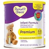 Parent's Choice. Infant Formula. PREMIUM. Milk-Based. With iron. Powder/Add Water. Prebiotics. DHA & ARA. Milk-based. 0-12 months. Full Day Supply. 4.3 OZ. Contents yield approximately 32 FL OZ of formula.